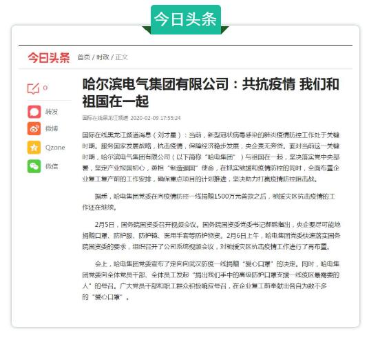 【媒體關注】 哈電集團馳援疫區(qū)廣受媒體關注
