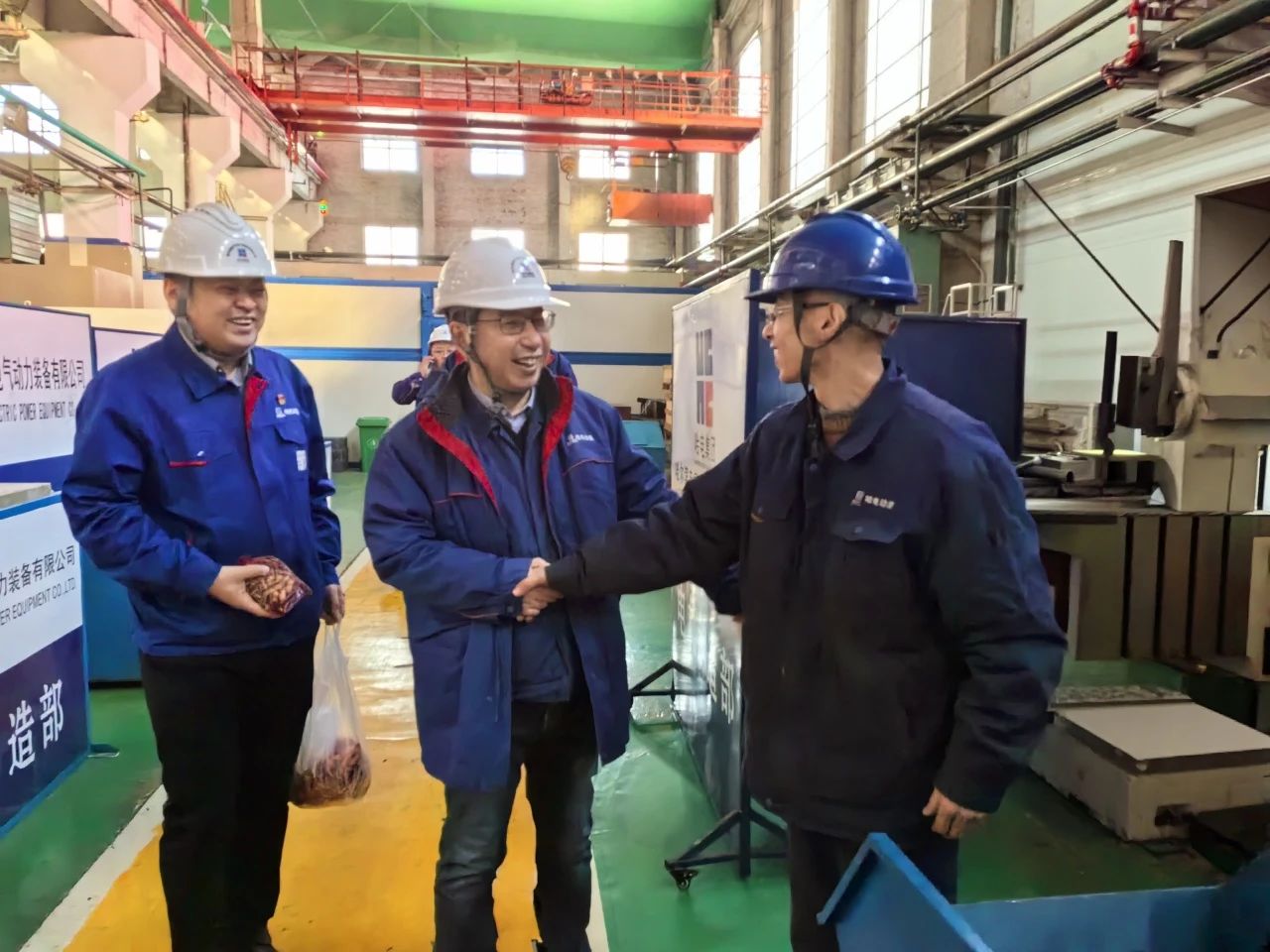 農歷正月初三,哈爾濱電氣動力裝備有限公司黨委書記、董事長李夢啟帶隊前往各制造部生產現(xiàn)場,看望慰問春節(jié)期間堅守崗位的一線職工,檢查節(jié)日安全生產落實情況,并向大家送上新春祝福。黨群工作部負責人陪同慰問。