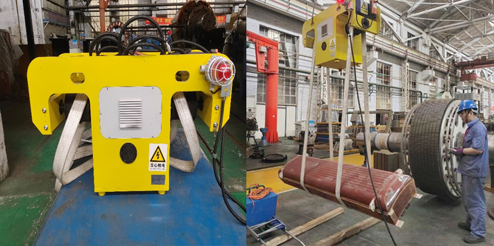 首先,工藝部對裝壓工具進行了升級。同步電機的磁極翻身,一直以來采用的是人工繞繩的方法。此方法繞繩調(diào)整不方便,耗時長,且容易造成磁極的磕碰。工藝部經(jīng)研究,引進了先進的自動磁極翻身工具,不僅安全可靠,方便實用,還在縮短了翻身時間的同時,保護了磁極不受到磕碰。