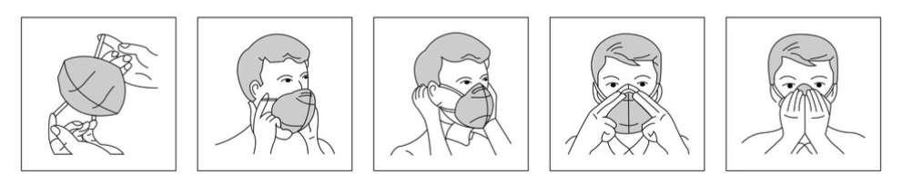 佩戴前洗手,將口罩顏色深的向外,淺色向內(nèi),鼻夾金屬條在上,戴好后捏鼻夾塑型。